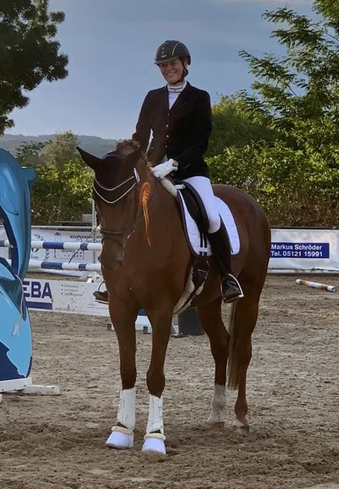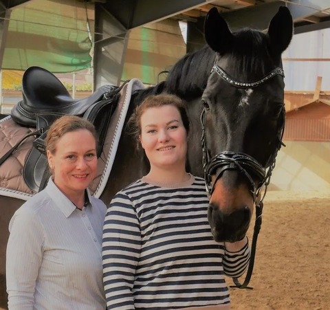 "Durch den Reitunterricht bei Iris haben mein Pferd und ich uns enorm weiterentwickelt und es gab meinerseits so einige AHA-Erlebnisse. Wir profitieren enorm von der Kombination Beritt und Unterricht. Mein Wallach erfährt so die korrekten Hilfen und wird viel durchlässiger, sodass ich dieses dann erfühlen und selber leichter umsetzen kann. Wir freuen uns jetzt auf die Turniersaison und hoffen, dass wir einige Erfolge mit Iris feiern dürfen…"